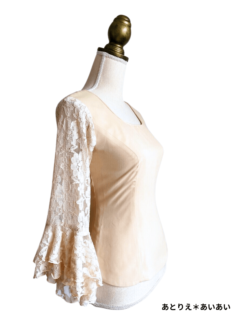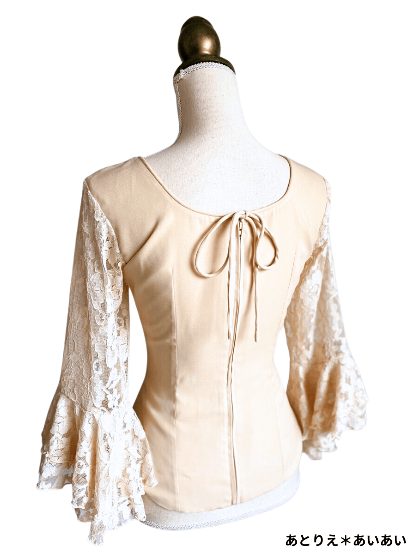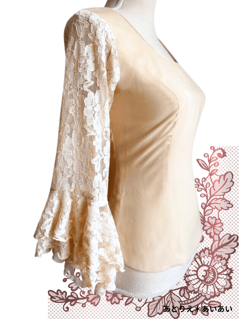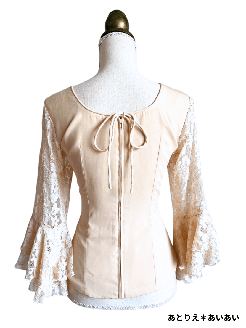 《即納品》オートミール色ブラウス、お袖レース素材 [BL-LC-59-C]
