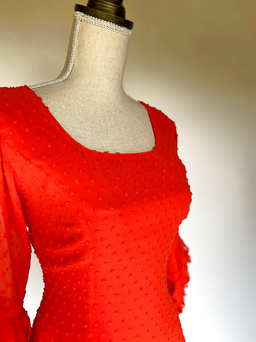 【生地・素材】シフォンジョーゼット生地、立体水玉模様、ポリエステル、着心地・肌ざわり良く、洗濯機洗いもOK、取り扱い簡単