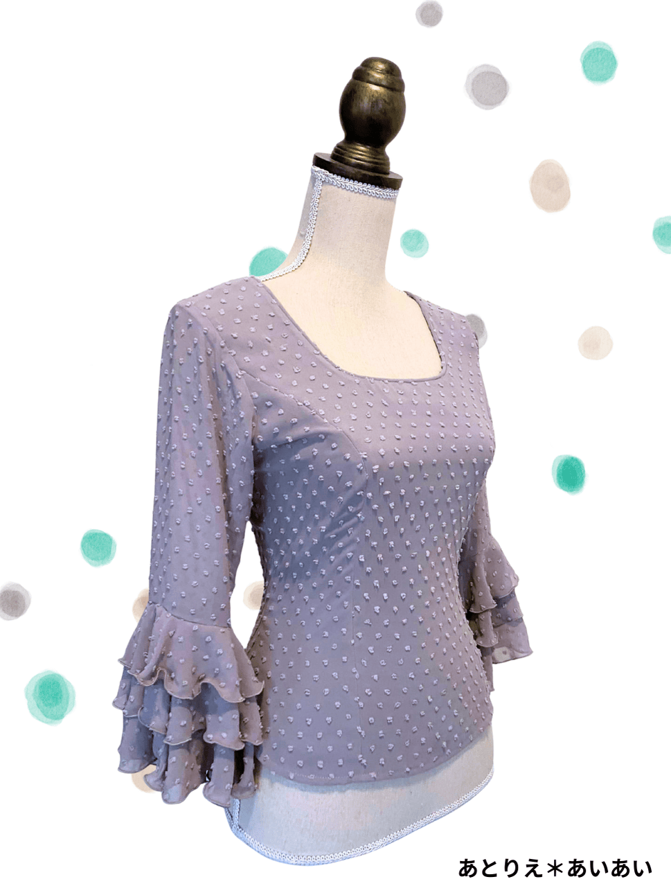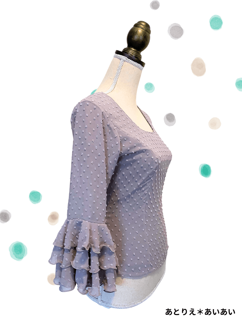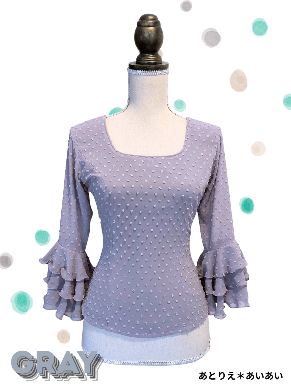 《即納品》ブラウス、立体水玉、グレー [BL-RM-07-GY]