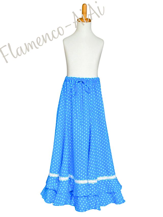 《即納品》女児用ファルダ、フリル2段、ブルー、丈70cm [KD-01‐BL]