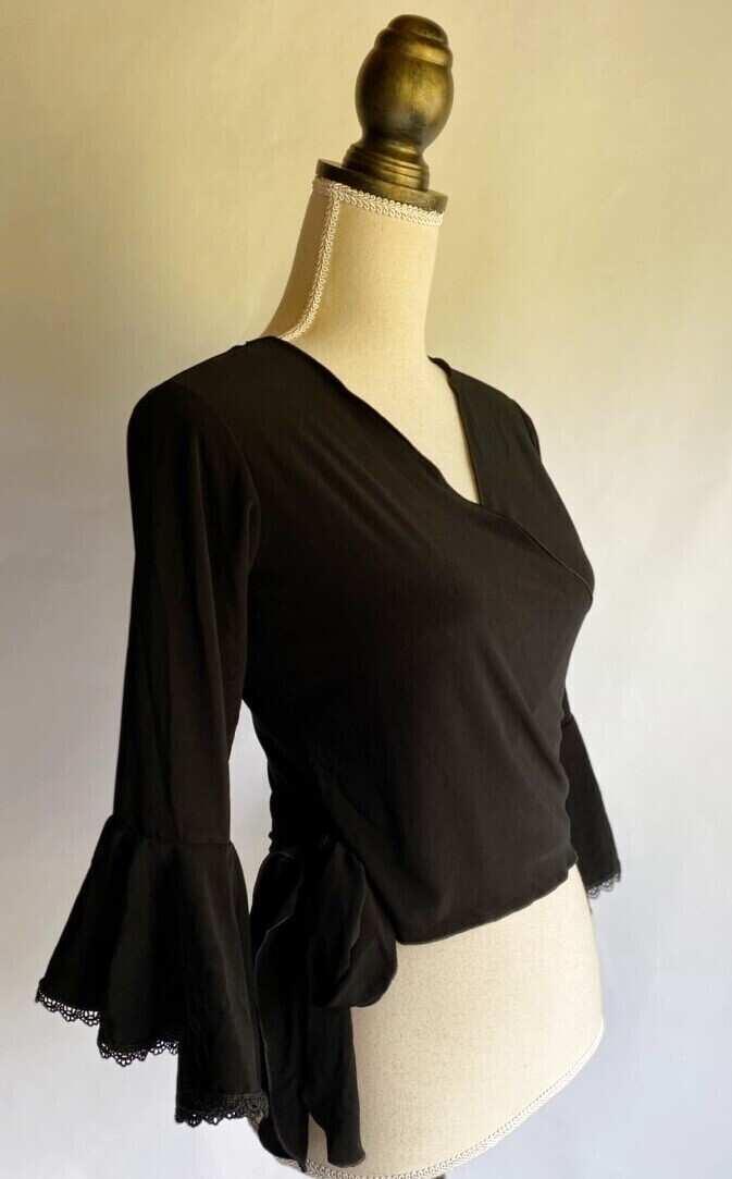 袖先をレーステープで飾り付けた定番ブラックのカシュクール
