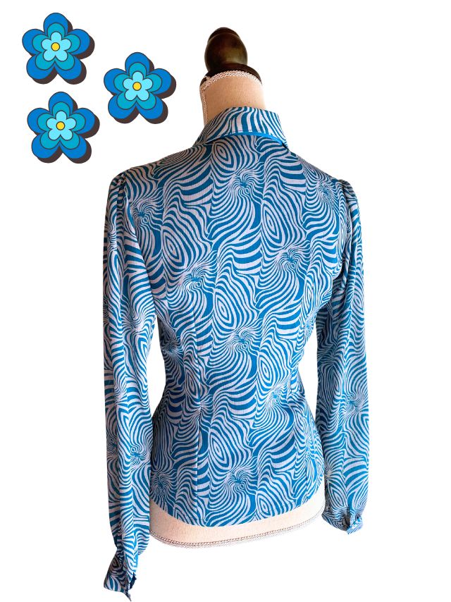 80'sサイケ調っぽいオープンカラーのマニッシュブラウスです