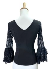 ニット生地、ブラック、袖部分はチュールレース生地(リーフ)