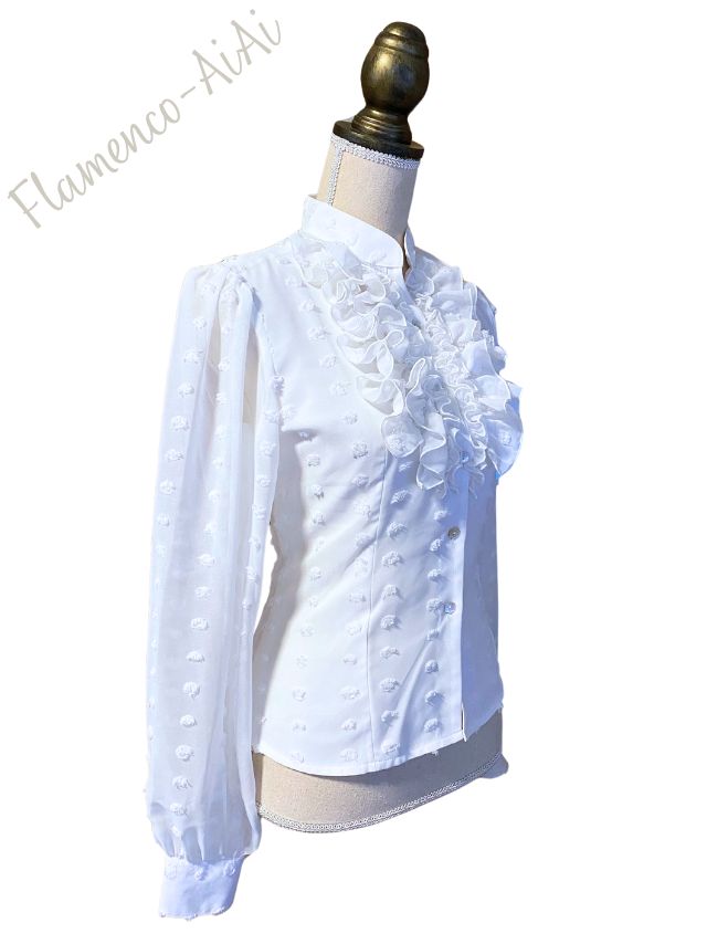 【詳 細】前ボタン、フロントに縦フリルが6本、カフス