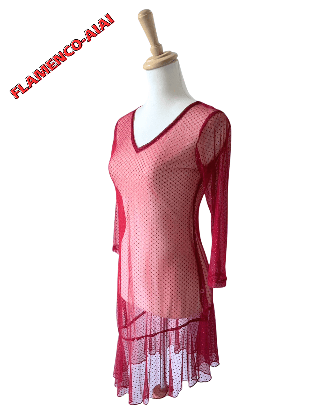 【生地・素材】チュールレース生地、ポリエステル、レッド