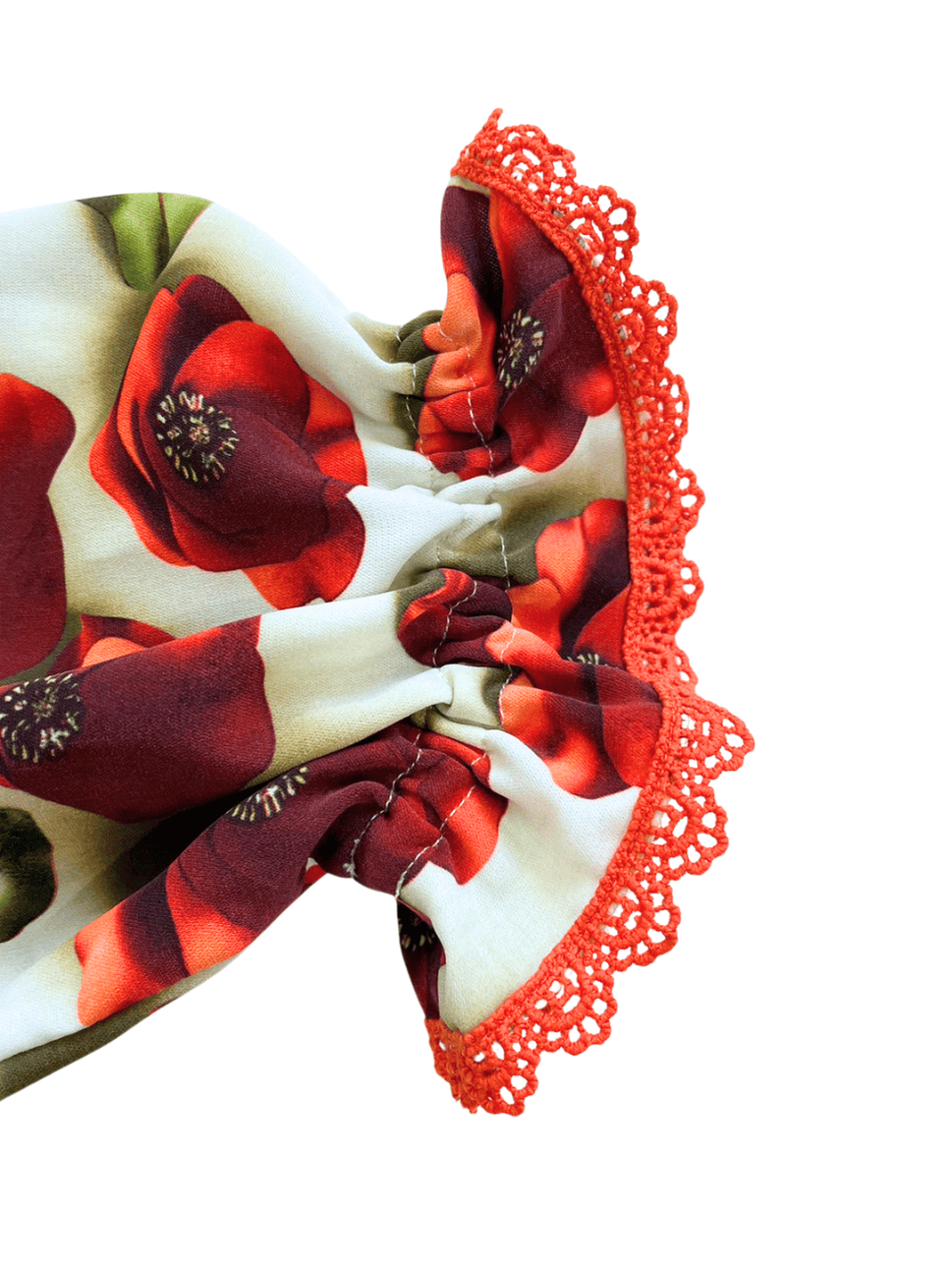 襟周りにパイピングひも入り、襟周りサイズを調整できます。