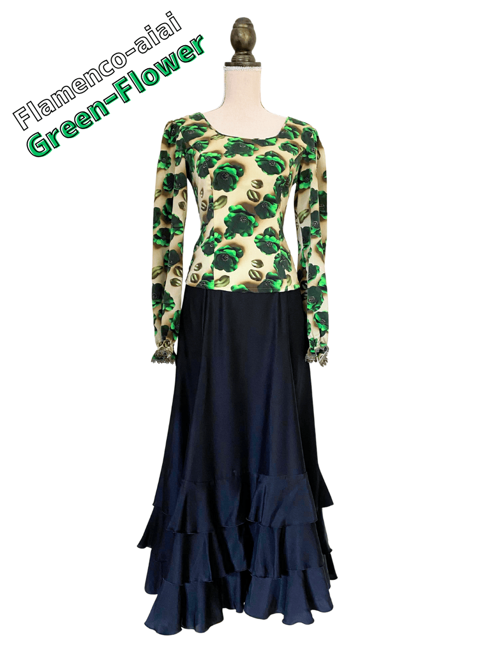 ブラウス、フラワー、グリーン [BL-G-159-3]