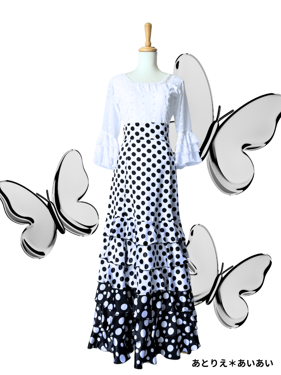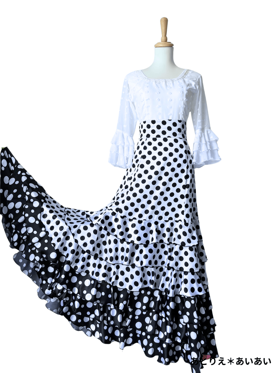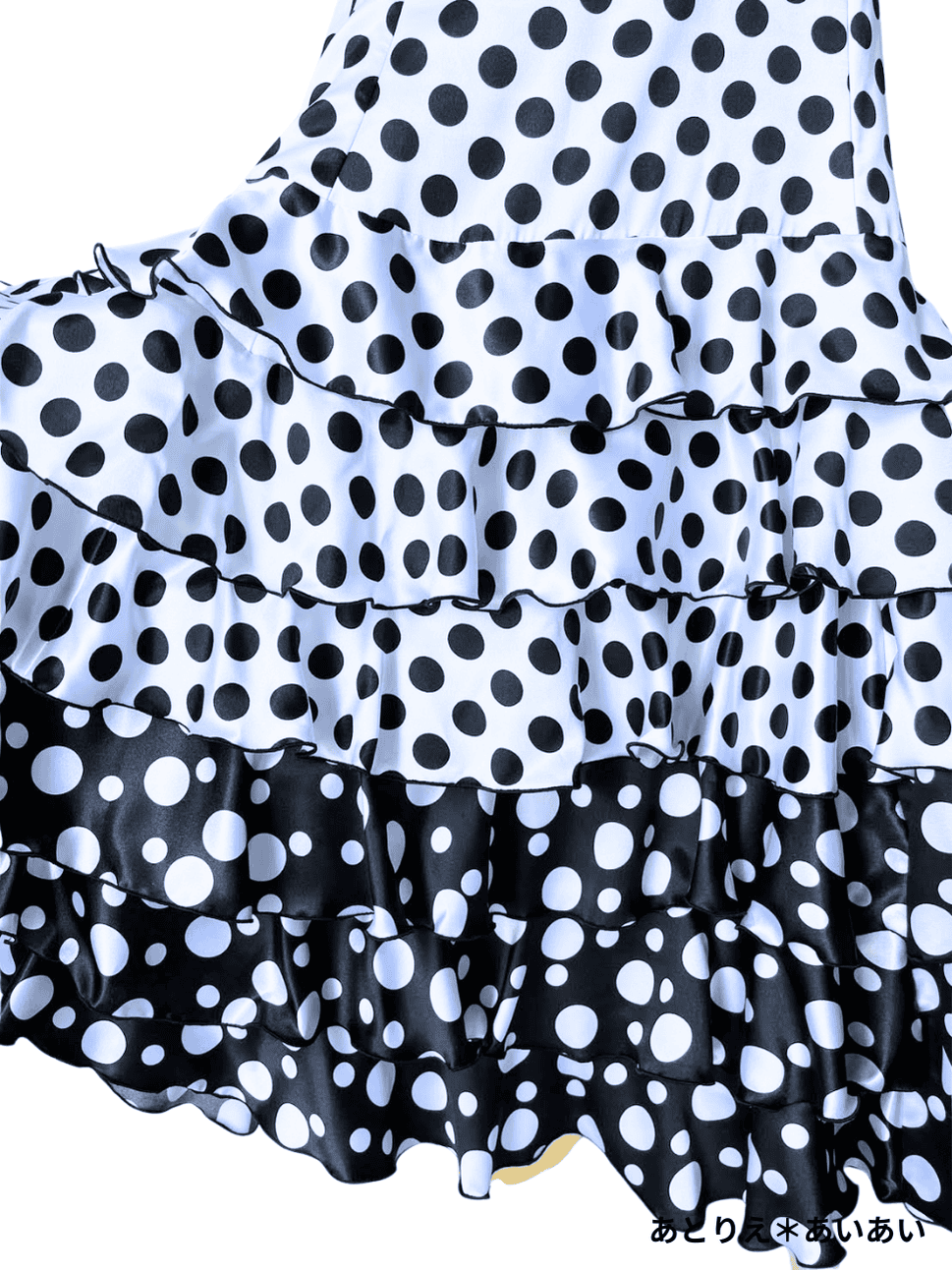 SALE‗ハイウエストファルダ、3段フリル、サテン水玉、W72cm 丈:98cm [FL-HW-78-C]