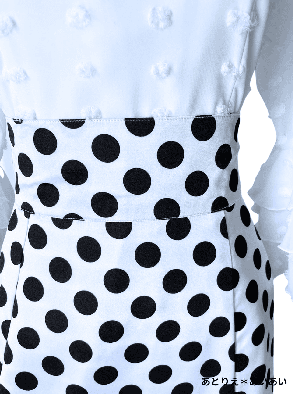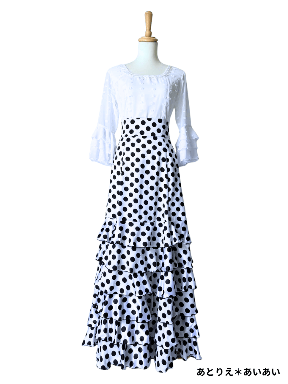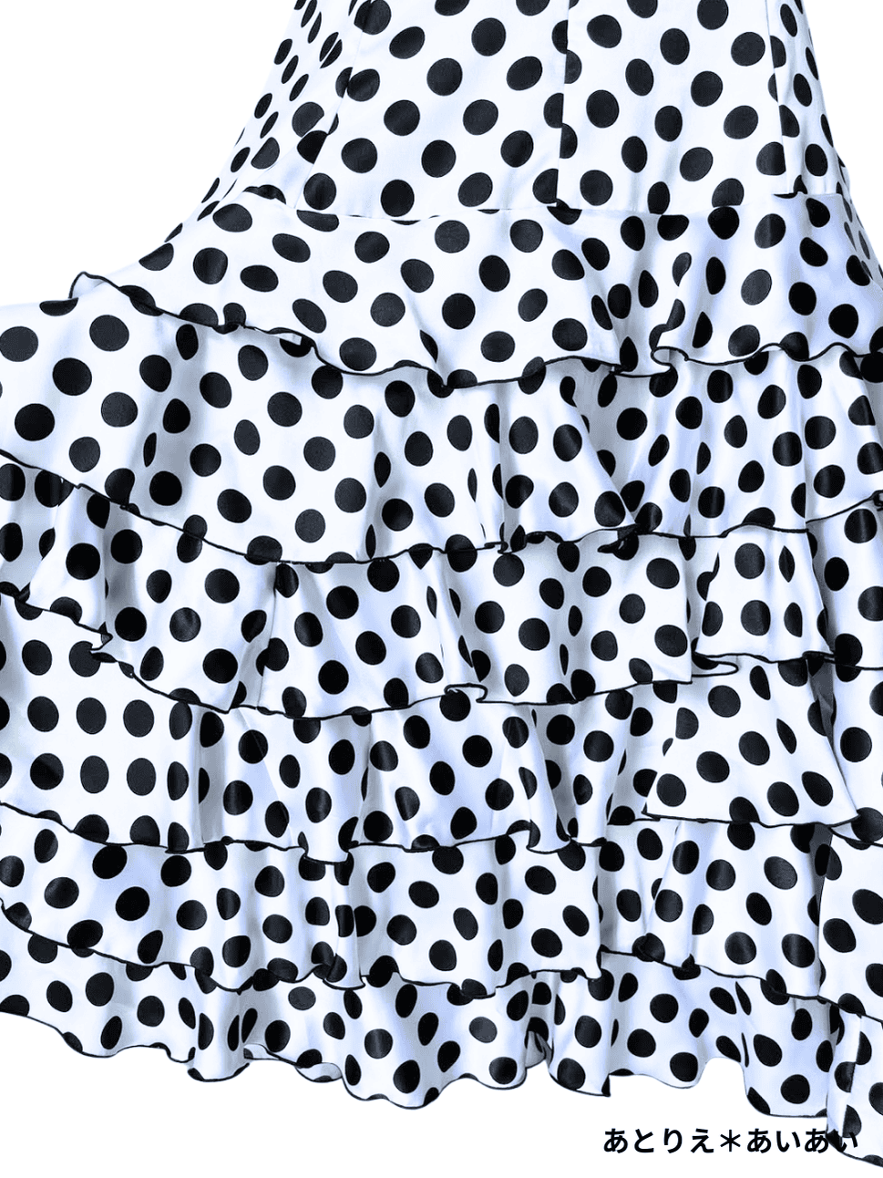 SALE‗ハイウエストファルダ、3段フリル、サテン水玉、W72cm 丈:98cm