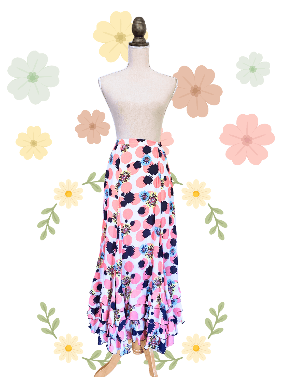 フリル4段、ジョーゼット生地、ピンクDOT🌸ホワイトベースカラー