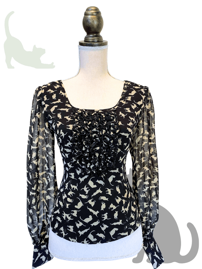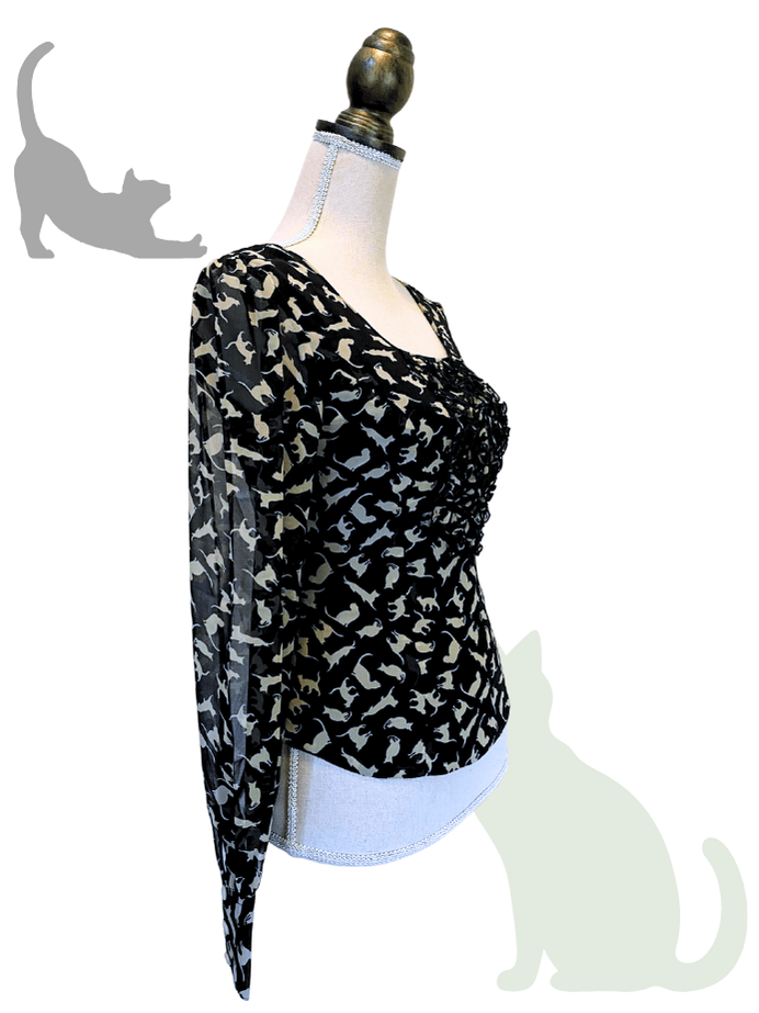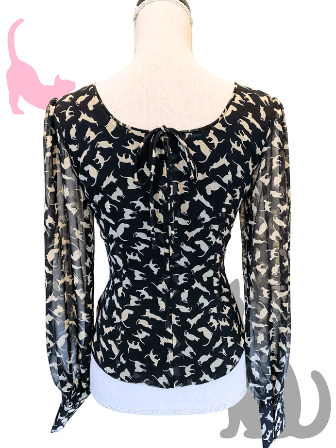 ●即納品●ブラウス、ねこ柄、Mサイズ [BL-G-160]