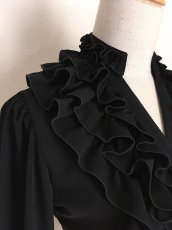 縦フリルのブラウス、ブラック [BL-10-BK]